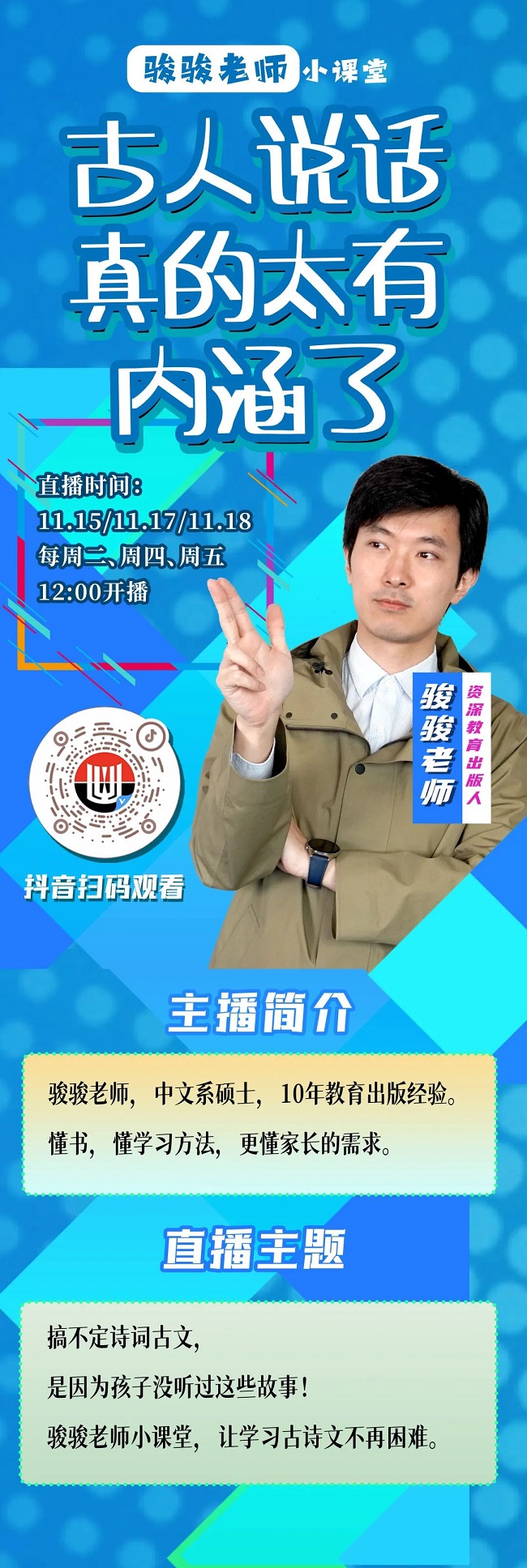 华东师范大学出版社直播预告 | 骏骏老师小课堂:古人说话真的太有内涵了(11月15日/11月17日/11月18日12:00) - 出版动态 - 中国高校教材图书网
