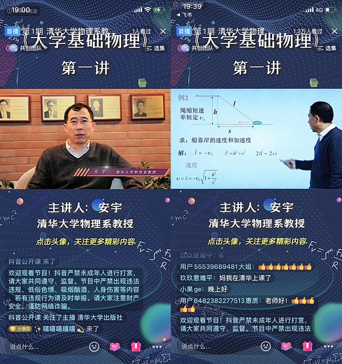 据悉,安宇教授《大学基础物理》公开课由抖音联合清华大学出版社共同发起。节目共有五期,包含《大学基础物理》中的力学、热学、电磁学、波动光学和量子物理五大部分,由清华大学安宇担任主讲嘉宾。