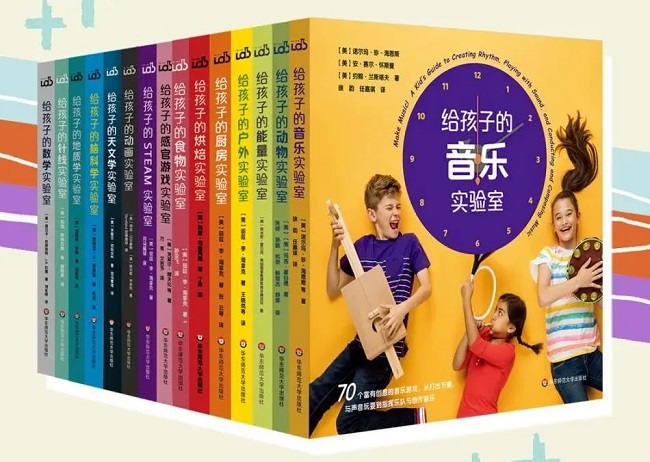“给孩子的实验室”系列(15册)是一套定位于家庭亲子实验的科普产品,从不同的学科领域出发,提供了诸多易于操作、简单明晰的实验项目。“艺术与生活实验室”包含烘焙、食物、音乐、动画、针线等分册;“身边的科学实验室”包含厨房、户外、动物、STEAM、感官等分册;“高阶学科实验室”包含数学、天文学、地质学、脑科学、能量等分册,致力于让每个家庭的厨房、阳台以及社区公园都可以变成“实验室”。