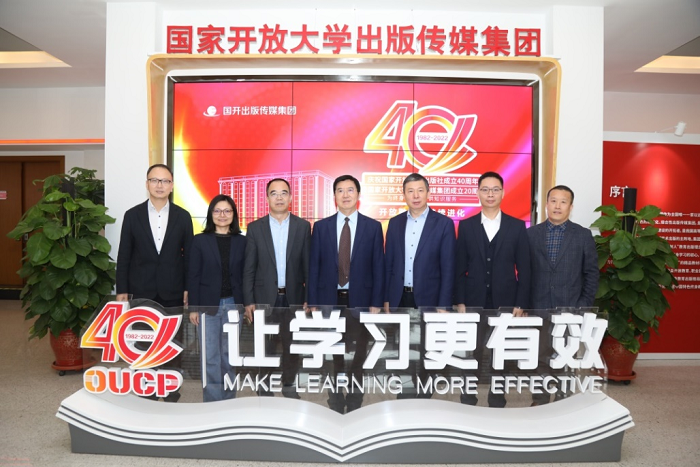 国家开放大学出版社成立四十周年暨出版传媒集团成立二十周年之际,中国高等教育学会会长,教育部原党组副书记、副部长杜玉波来到国家开放大学出版传媒集团参观调研,国家开放大学党委书记、校长荆德刚陪同考察。
