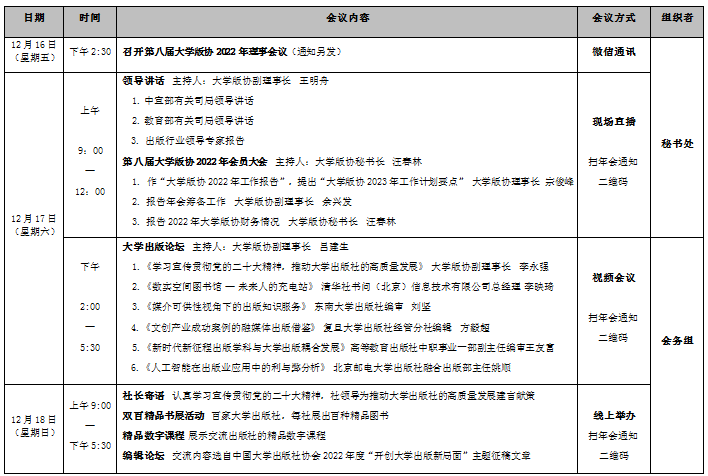 中国大学出版社协会2022年年会暨第35届全国大学出版社图书订货会日程表(点击下载)