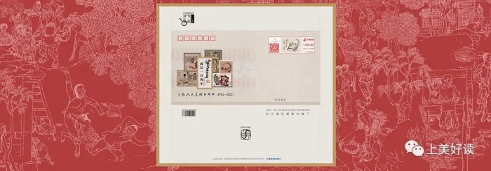 活动现场,上海市委宣传部副部长、新闻出版局局长徐炯,贺夫人谢慧剑女士,上海世纪出版集团党委书记、董事长黄强,上海市文学艺术界联合会专职副主席、秘书长沈文忠,上海市美术家协会主席郑辛遥,著名画家、美术评论家谢春彦,上海市集邮有限公司总经理马海平共同为《贺友直全集》新书揭幕。与这部皇皇巨著同时首发的,还有一枚上海人民美术出版社联与上海市邮政联合发布的“纪念贺友直诞辰100周年”纪念封。以贺友直先生手绘头像及其所创作的《胖嫂》《朝阳沟》《蛐蛐》《南京路上好八连》四幅作品画面为主画面,典雅活泼,极富趣味。上海书展期间,将同期发售。