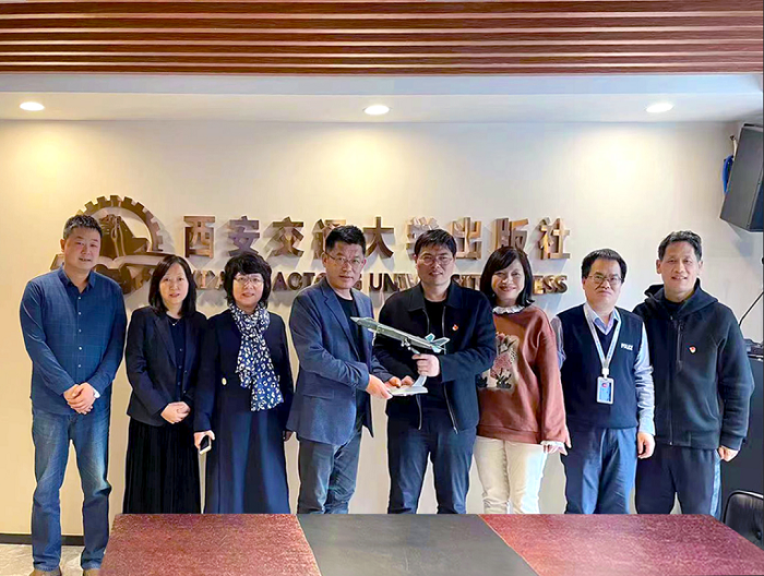 为进一步加强交流,推进深度合作,11月23日西北工业大学出版社社长高大力、总编辑雷军等一行7人到西安交通大学出版社调研。西安交通大学出版社董事长张伟、总经理刘夏丽、副总编辑秦茂盛、财务总监李欣、副总经理刘晨、总编辑助理祝翠华以及办公室、总编办、质检中心、市场营销中心等部门负责人参加了活动。