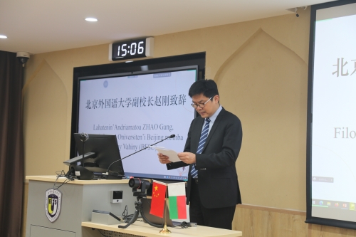 北京外国语大学党委常委、副校长赵刚出席活动并致辞。他指出,短视频大赛彰显了构建中马命运共同体的青年力量,而《马达加斯加语讲中国文化》作为国内第一本马达加斯加语教材,是北外为中马友谊50年献上的特殊礼物。