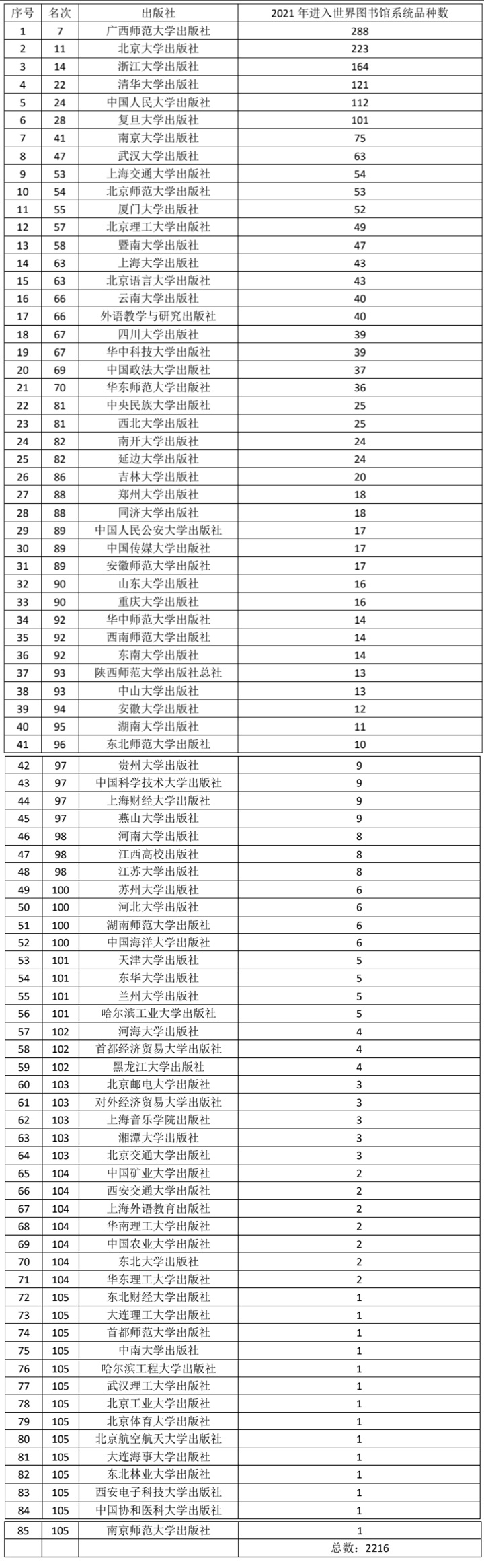 中国大陆出版机构入藏品种排行榜(大学出版社排行榜)