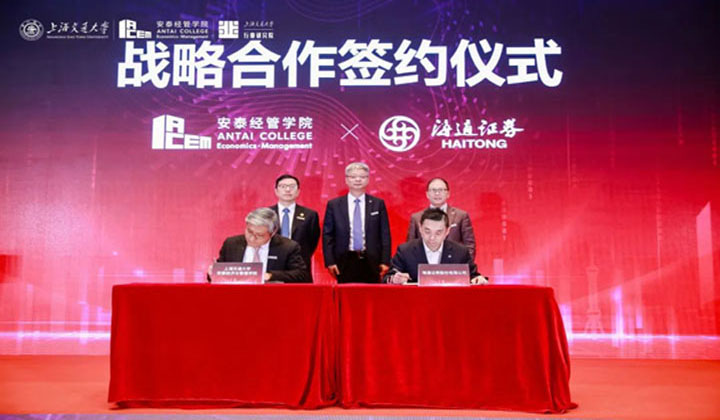 在周杰董事长、姜文宁书记、田新民副院长的见证下,陈方若院长和海通证券上海分公司副总经理于涵代表安泰经管学院和海通证券签署了战略合作协议。