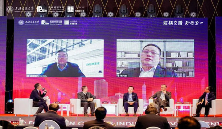 上海交通大学校长、党委副书记、中国工程院院士林忠钦为此次论坛作了线上致辞。林校长指出,安泰经管学院“纵横交错,知行合一”的发展战略与上海交通大学“求实学,务实业”的办学宗旨高度契合,寄望安泰经管学院能以此为契机,引领全球商学院改革。