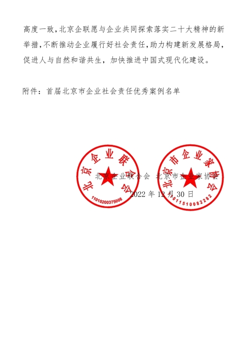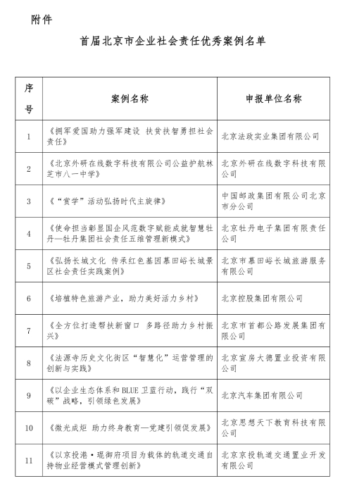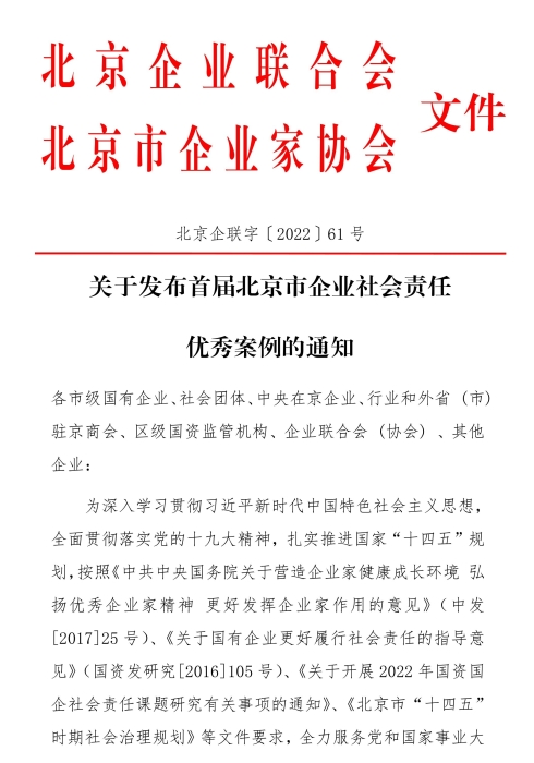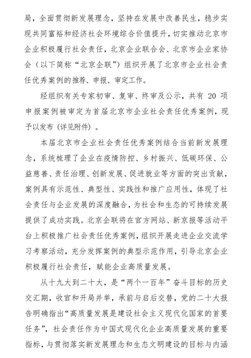 《关于发布首届北京市企业社会责任优秀案例的通知》