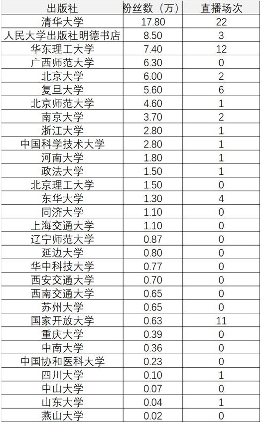 对于许多出版社来说,进行图书直播营销的时间并不长,所以免不了和知名主播或其他平台的合作,但与此同时,营销关系中出版社对他们的依附性也在增强,这其实会进一步压缩出社的利润空间。而且大学出版社总体规模较小,难以负担起与“大V”主播合作的成本。所以不少出版社开始使出浑身解数,让编辑、作者从台前走向幕后,然而直播效果却不尽如人意。