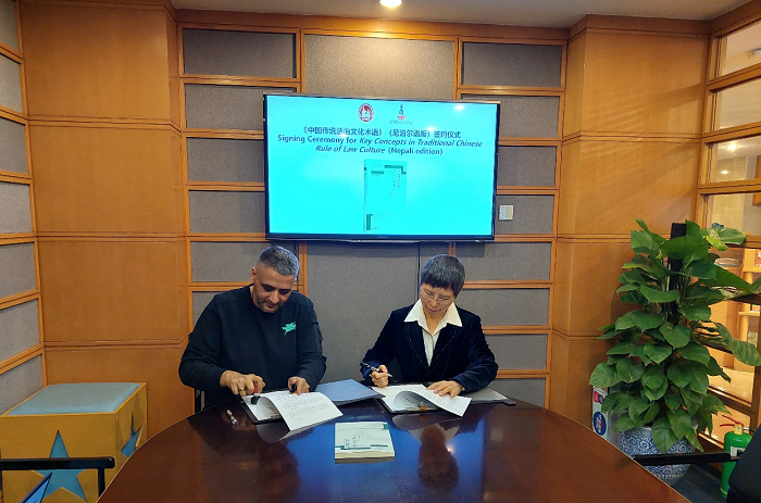 会谈结束后,章思英副总编辑和高塔姆总经理在会议现场就《中国传统法治文化术语》一书签署尼泊尔语版授权协议,这是本书版权输出的第一个外语版本。《中国传统法治文化术语》挑选传统法治文化领域的重要术语,结合古籍中的引例加以解读和呈现。该书输出尼泊尔,有助于尼泊尔法学界人士和广大读者了解中国传统法治文化的独特魅力。