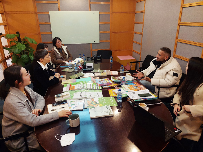 国际合作部版权主管杨帆,中国语言文化出版分社编辑王欢、杨馨园、刘雪梅等参加会谈。