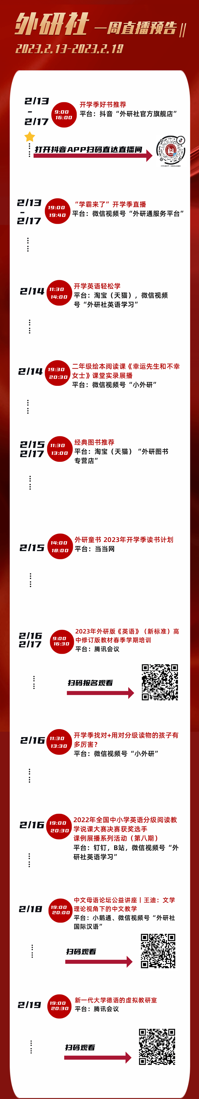 外研社一周直播预告(2.13-2.19) - 出版动态 - 中国高校教材图书网
