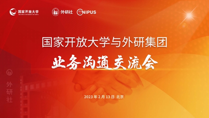 2月13日下午,国家开放大学与外研集团业务沟通交流会顺利召开。国家开放大学党委委员、副校长范贤睿,国际部部长王永锋,信息化部部长程罡,国开在线教育科技有限公司董事长袁亚兴,学习资源部副部长李薇,国际部副部长王硕、石运志莅临交流。北京外国语大学国际交流与合作处副处长李茂林,国际教育学院副院长苑大勇,外研集团(外研社)党委书记、董事长,外研社社长王芳,外研社党委副书记、副董事长、副总编辑常小玲,国际部主任邵磊,外研在线CEO商其坤,CCO兼高等教育事业部总经理徐一洁,综合教育事业部兼学历教育事业部总经理蒋亦雷,高等教育事业部技术总监冯晋参加会谈。