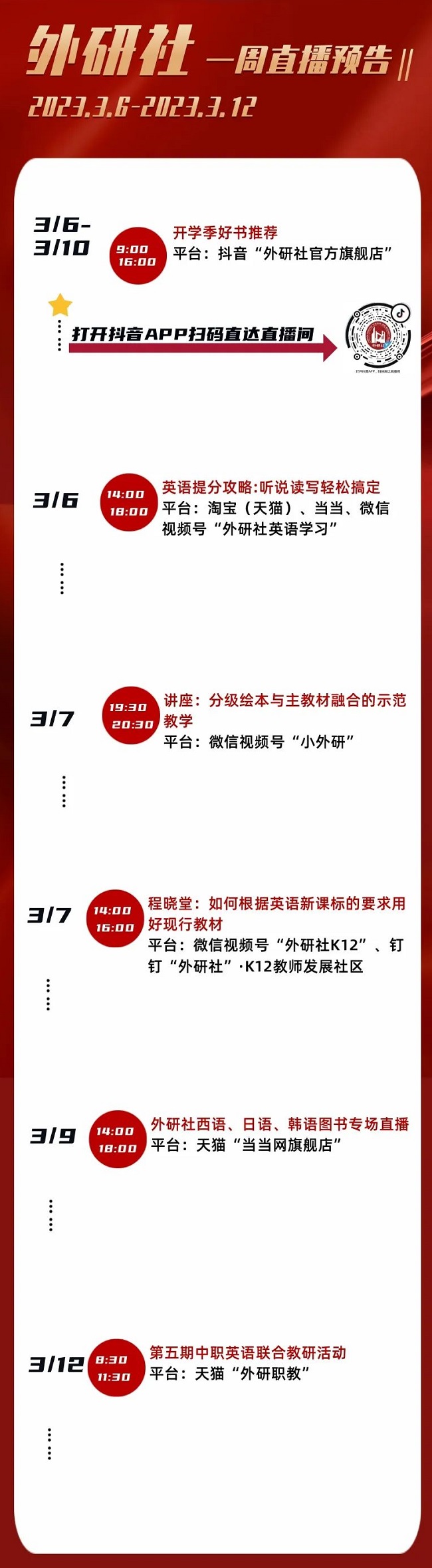 外研社一周直播预告(3.6-3.12)