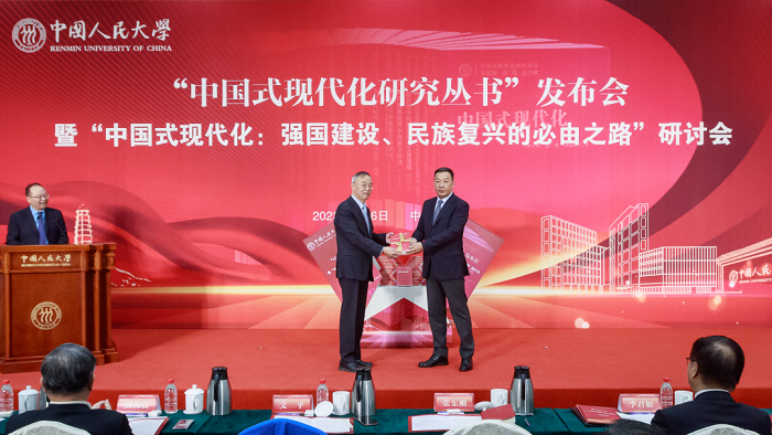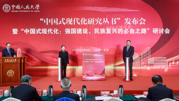 3月6日,“中国式现代化研究丛书”发布会暨“中国式现代化:强国建设、民族复兴的必由之路”研讨会在中国人民大学举办。