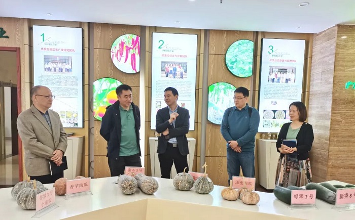签约仪式之前,江彪副所长对董夫才社长一行表示了热烈欢迎,并带领出版社人员参观了蔬菜所近年的科研成果和蔬菜实物展示。董夫才社长对蔬菜所的科研成果表示了肯定和赞赏,并就重大科技成果转化推广、科技服务、新型职业农民培训等领域进行深入探讨与交流,希望多形式开展合作出版。