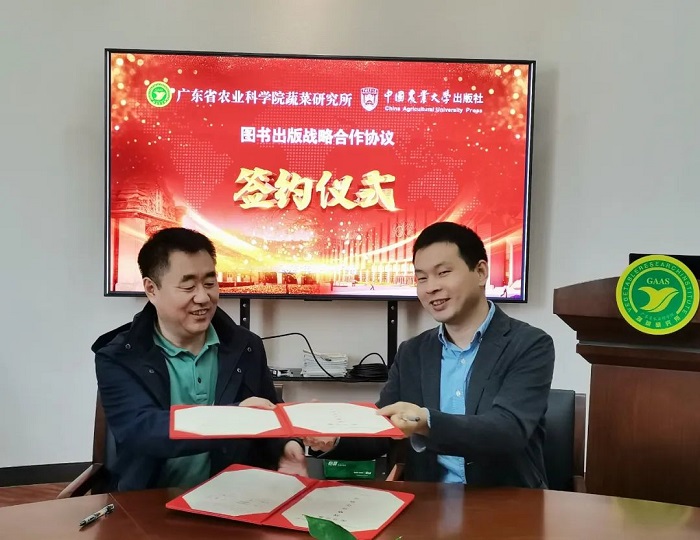 江彪副所长在听取了出版社一行的介绍后,表示此次座谈为所里的出版工作打开了新的思路,期待能在后续的学术专著、技术创新和科学普及等图书出版项目中加强交流与合作。随后,江彪副所长代表广东省农业科学研究院蔬菜研究所与中国农业大学出版社签订了图书出版战略合作协议,并在一些图书的出版方面初步达成了合作意向。