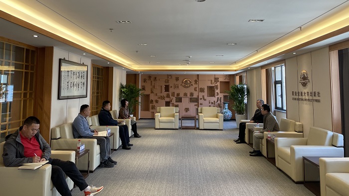 施春生介绍了北京人天书店有限公司作为全国知名民营图书发行公司、专业性的图书经销商和出版信息商的行业优势,希望与西安交通大学出版社在学术出版、图书销售和图书捐赠等方面展开深入合作。