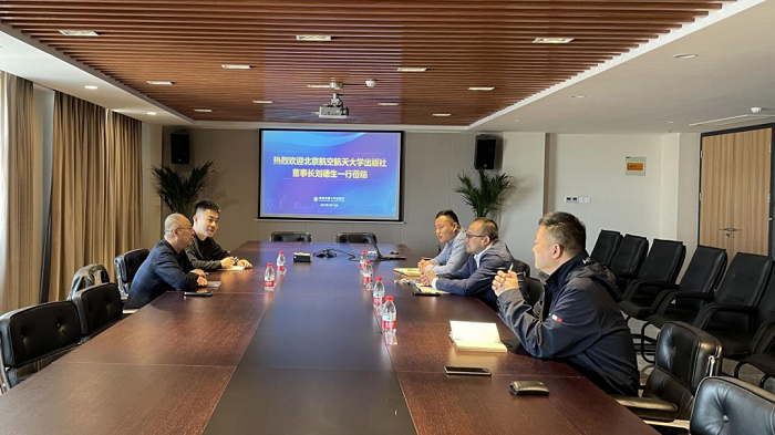 李重对刘德生一行来访表示热烈欢迎,他简要介绍了西安交大出版社的基本情况,并表示北京航空航天大学出版社是一家优秀的综合性大学出版社,与交大出版社都以工科图书见长,拥有相似的产品结构,希望双方发挥优势、互通有无,共同探索服务两校“双一流”建设的更优方案。