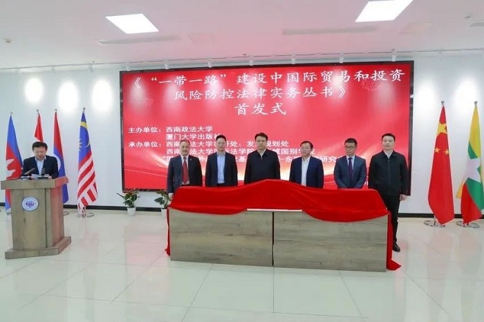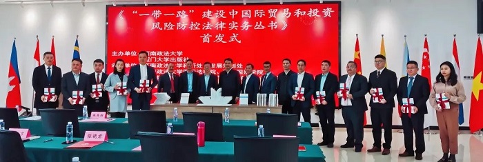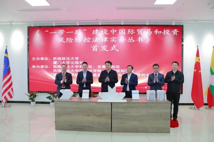 2023年3月13日,“一带一路” 建设中国际贸易和投资风险防控法律实务丛书首发式在西南政法大学国家级涉外法治研究基地中国-东盟法律研究中心隆重召开。西南政法大学党委书记樊伟,厦门大学出版社总编辑施高翔,重庆市贸促会法务部部长于光建,丛书分卷主编/合作单位代表广东省律师协会副会长、深圳市前海国合法律研究院执行院长陈方出席并致辞。首发式由西南政法大学党委常委、副校长唐力主持。