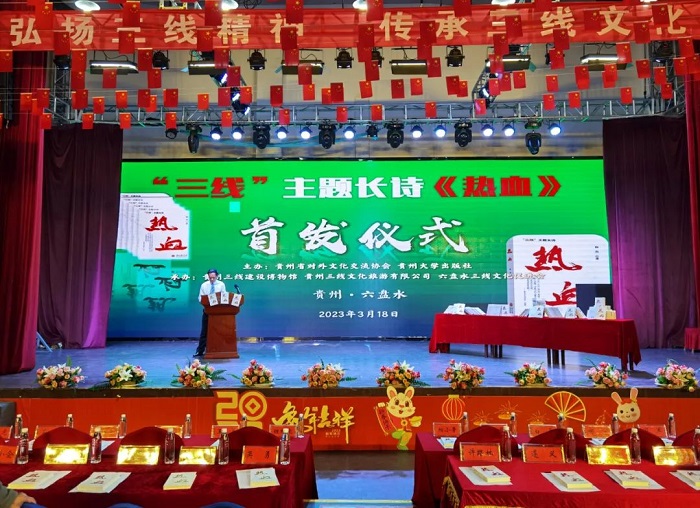 3月18日,由贵州大学出版社与贵州省对外文化交流协会主办的讴歌“三线精神”主题长诗《热血》首发式在六盘水市贵州三线博物馆举行。该书由贵州著名诗人杨杰历时三年创作而成,是对三线建设所蕴藉的精神饱含深情的诗意书写。全诗共4500行,讲述了三线建设给六盘水带来工业基础,创造巨大物质财富的历史过程,挖掘出了“三线建设”这一共和国历史上特殊事件背后的宝贵精神财富,勾勒出了“好人好马上三线,备战备荒为人民”的真实场景。