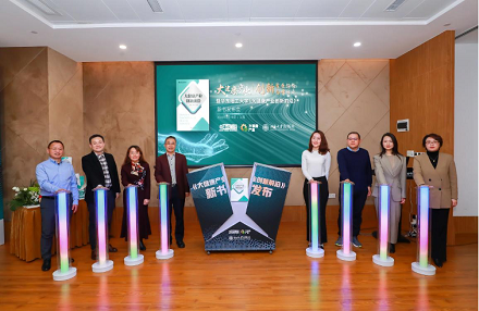 活动尾声,阎海峰教授、北京大学出版社编辑闫格格、MBA大健康产业管理班学术主任苏似锦、MBA项目部主任刘显珊以及其他新书创作参与者共同为新书《大健康产业创新前沿》进行了发布仪式。