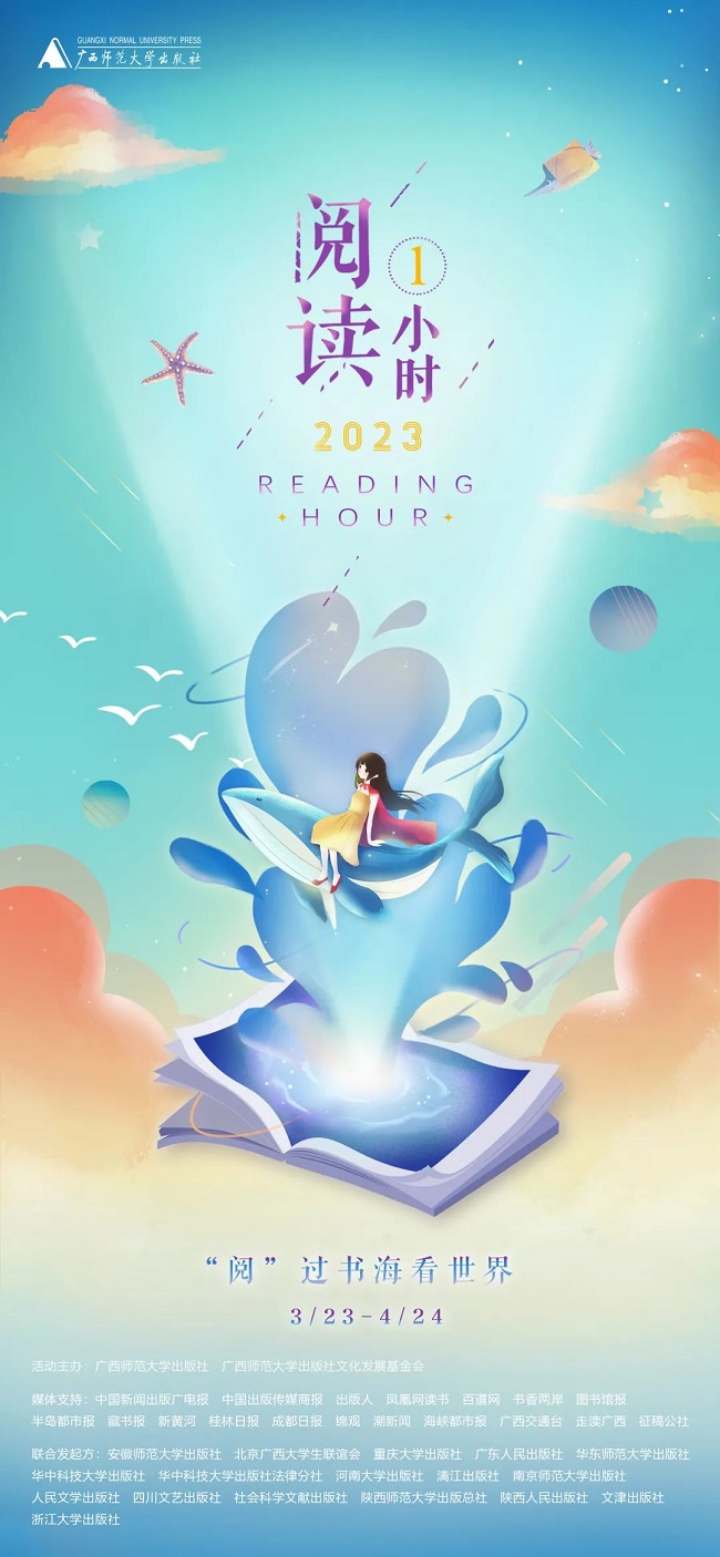 今天,广西师范大学出版社向全国高校、文化空间、老年机构、儿童阅读空间、海外机构正式发出倡议及邀请,如果你也认同“阅读一小时”的理念,那就一起来参与或承办“阅读一小时”活动吧。