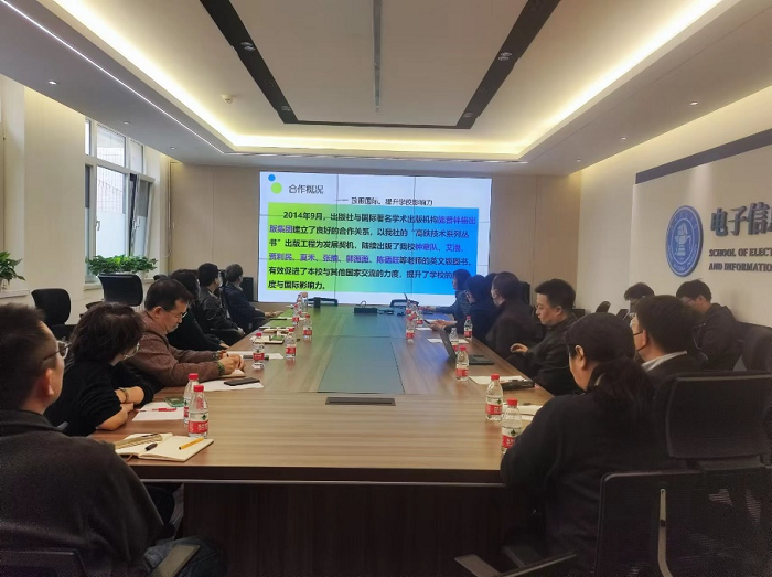 一同参会的还有电子信息工程学院上官伟、吴昊、燕飞、张立军等教学科研团队带头人和骨干成员,双方就图书出版相关问题进行了探讨。