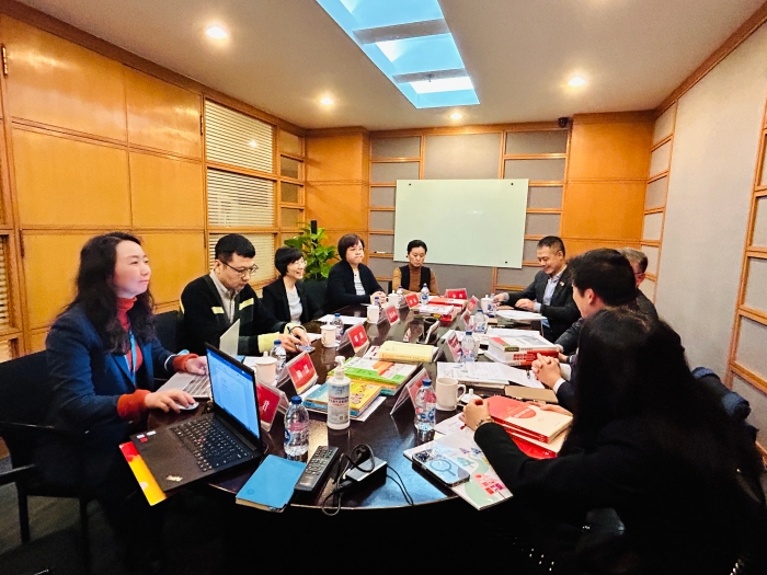外研社综合语种教育出版分社社长崔岚和西班牙语部、非通用语种部主任李丹,中国语言文化出版分社社长鞠慧,国际合作部主任邵磊和版权经理谷君参加会谈交流活动。