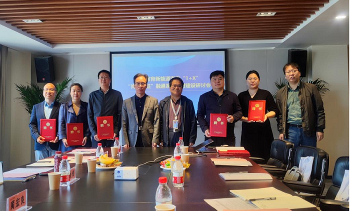会议讨论通过了职业教育新能源汽车1+X“岗课赛证”融通系列教材编委会,并向编委会主任及副主任颁发证书。