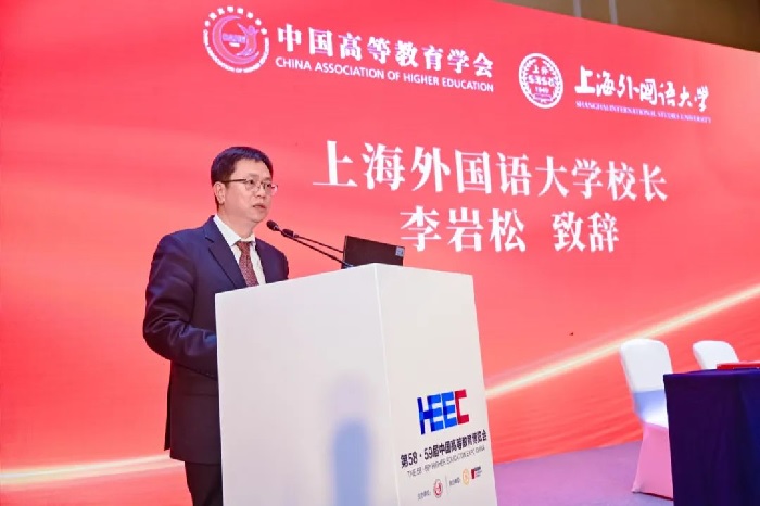 李岩松校长在致辞中首先感谢中国高等教育学会对上海外国语大学的支持和信任,同时指出,教育的高质量发展、更高水平的对外开放和中华文化更好走向世界,需要培养大批有家国情怀、国际视野、专业本领、参与全球治理、具有全球胜任力的卓越国际化人才。