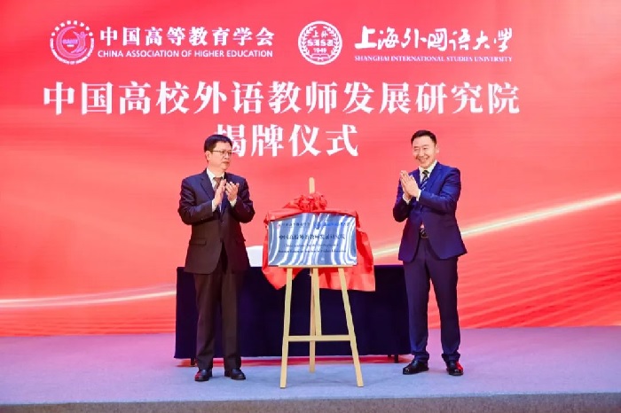 随后姜恩来秘书长和李岩松校长共同为“中国高校外语教师发展研究院”揭牌,研究院落户上外。
