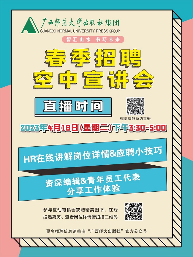 广西师范大学出版社集团春季招聘空中宣讲会预告 - 出版动态 - 中国高校教材图书网