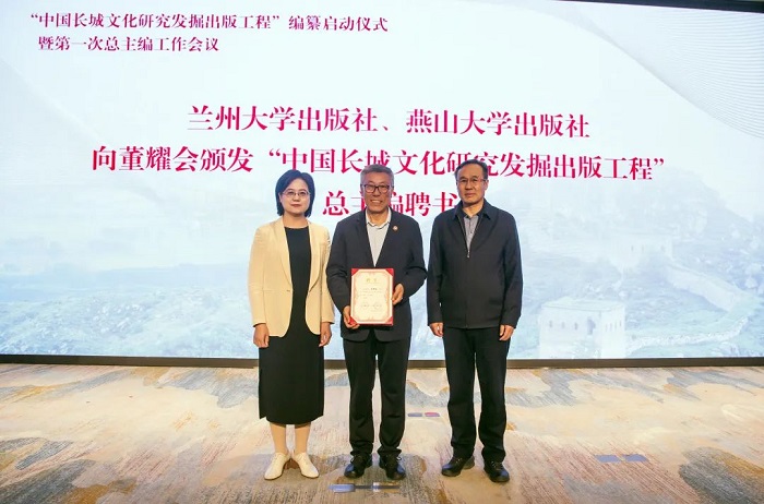 兰州大学出版社、燕山大学出版社向董耀会颁发“中国长城文化研究发掘出版工程”总主编聘书