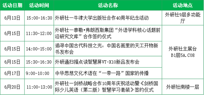 书展期间,外研集团(外研社)党委书记、董事长、外研社社长王芳将于6月16日下午在2023北京出版高峰会议上发表题为“站在未来看当下——外研心中有‘数’”主旨演讲。外研社法国合作伙伴伯度安公司总经理李伟(Alain Lévy)先生荣获第十六届中华图书特殊贡献奖,将于6月14日下午在钓鱼台国宾馆参加颁奖仪式和书展开幕之夜活动,王芳社长应邀出席。