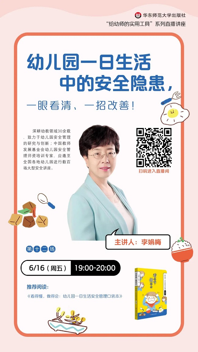 李娟梅,深耕幼教领域30余载,致力于幼儿园安全管理的研究与创新;中国教师发展基金会幼儿园安全管理师资培训专家,应邀至全国各地幼儿园进行数百场大型安全讲座。“联合国儿童基金会预防儿童伤害干预项目”试点单位负责人;2007年“北京教育界领军人物”;2008年北京教育年度先进个人;2011年成功地将OHS18001《职业健康安全管理体系》标准引进到幼儿园安全管理工作,并通过国际认证。撰写著作《看得懂,做得会——幼儿园一日生活安全管理口袋本》。