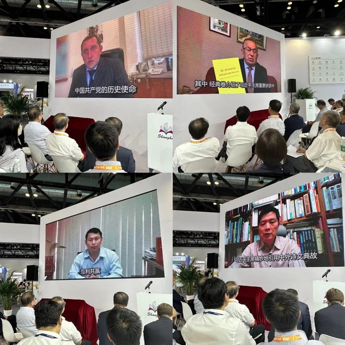 俄罗斯科学院科学出版社副总裁瓦维洛夫·奥列格·基莫维奇、阿尔巴尼亚凡诺尔出版社社长雷杰普·希达、韩国延世大学人文学研究所研究员申振浩、老挝国家出版与发行社社长阿努拉·赛亚彭通过线上视频的形式发来贺辞,一致表示该书的多语种出版有助于各国人民的相互理解,切实起到了沟通作用,有助于其他国家更多、更好地了解中国,了解中国文化。