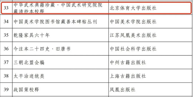 近日,全国古籍整理出版规划领导小组办公室公布了“2023年度国家古籍整理出版资助项目”,北京体育大学出版社《中华武术典籍珍藏·中国武术研究院院藏清抄本校释》成功入选,这是该社图书首次入选该资助项目。