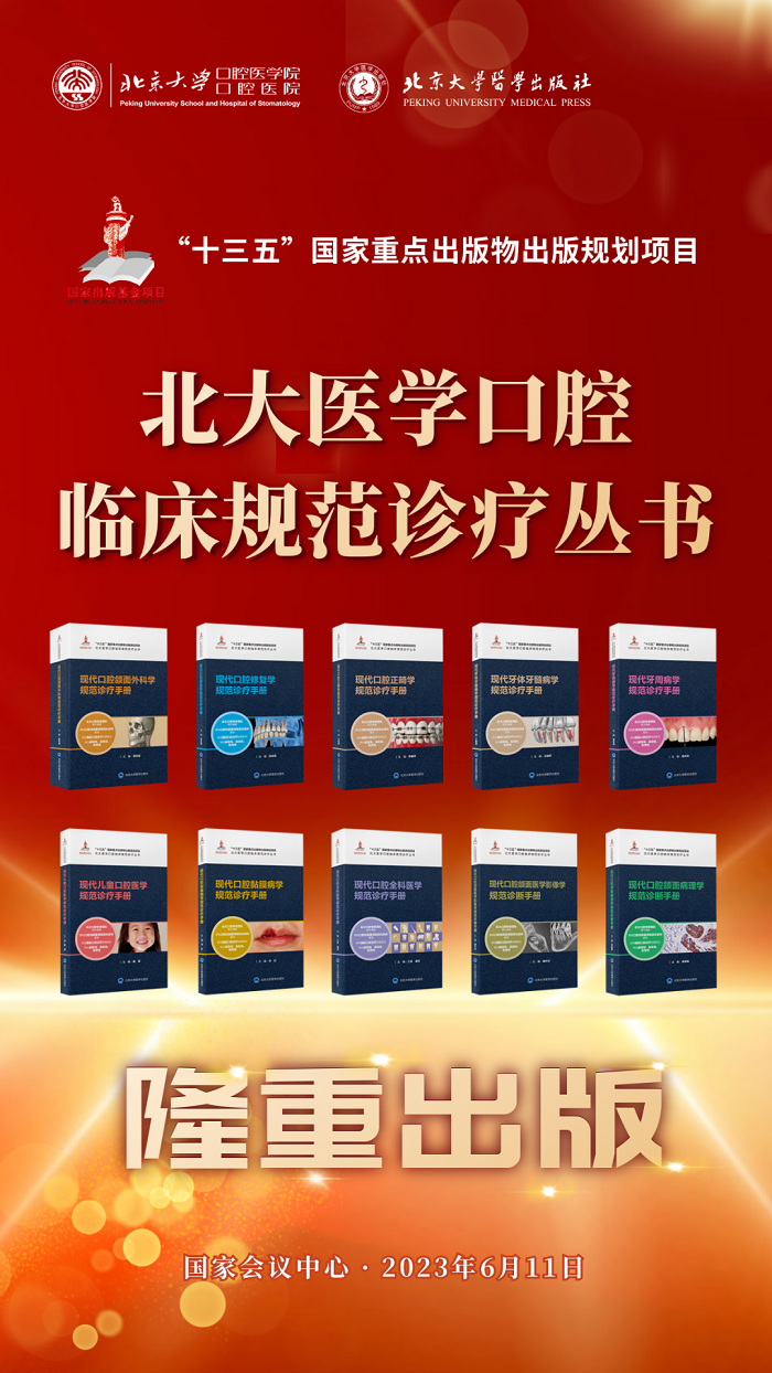 2023年6月11日,“北大医学口腔临床规范诊疗丛书”新书发布会在第27届中国国际口腔设备材料展览会暨技术交流会上隆重举行。丛书编委会及北京大学口腔医(学)院代表周永胜、邓旭亮、李铁军、江泳、傅开元、华红、李巍然、欧阳翔英、秦满、王恩博、王晓燕,北京大学医学出版社代表王凤廷、冯智勇、白玲、董采萱,以及近百名北京大学口腔医(学)院的专家学者出席了此次发布会。