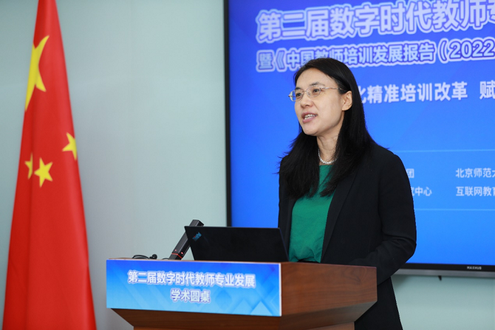 北京师范大学冯晓英教授代表《中国教师培训发展报告(2022)——精准培训视角》研制团队,对报告进行了全面介绍和深入解读。