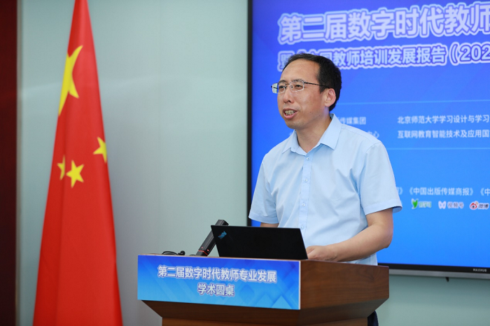 赵静在致辞中指出,教育部在深化教师精准培训改革方面做了许多工作,以加强内涵建设提升教师专业发展精准性、以“互联网+”重构专业发展样态,全力打造新时代高素质创新型教师队伍。其中一个主要着力点就是落实国家教育数字化战略行动,深入推动教师发展数字化建设,赋能教师群体的终身学习与专业发展。其中,以数字化赋能教师精准培训主要体现在三个方面:一是创新教师培训和学习方式,通过在线研修、混合式研修等多种方式,为广大教师提供满足需求的灵活学习方式;二是整合建设了丰富的教师学习资源,形成教师培训学习的资源超市,供有需要的教师选择学习;三是注重对平台上积累的教师学习行为数据进行深度分析和跟踪分析,从满足教师个性化学习需求的角度推动精准培训改革。
