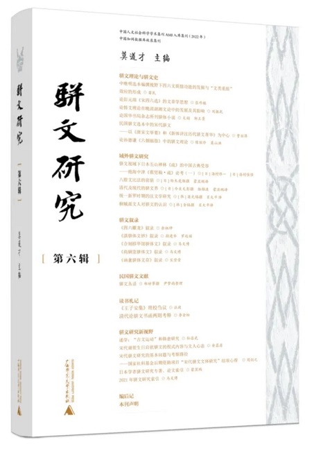 《骈文研究》是中国古代文学界面向海内外的唯一专门研究骈文文体学的学术集刊,是骈文学界交流学术新成果的重要平台。近日,该刊第六辑由广西师范大学出版社出版。
