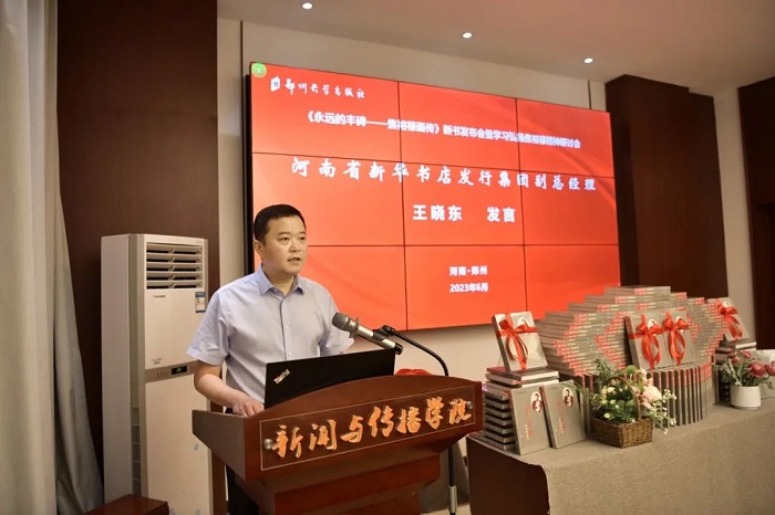 王晓东代表河南省新华书店发行集团做了发言,他希望通过立体化的发行,让《永远的丰碑——焦裕禄画传》等焦裕禄精神出版物,走向更多的企事业单位,走向千家万户,让焦裕禄精神发扬光大。