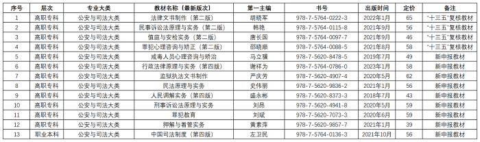 近日,教育部公布首批“十四五”职业教育国家规划教材书目,其中公安与司法大类共有30种教材,中国政法大学出版社出版的13种教材入选。
