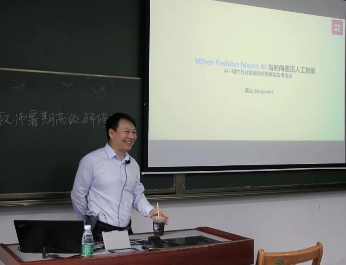 爱搭科技创始人兼CEO吴斌老师的课程题目是“当时尚遇见人工智能:AI+服饰行业智能化新发展及应用”。他从自身工作经历和创业实战出发,分享了他对最新AI+服饰行业智能化应用发展的见解,以及对服装行业与AI融合机遇的思考。他还分享了自身的创业经历和公司实战经验,列举了AIGC在服装行业的应用以及AI运用在传统服装行业遇到的挑战,并针对未来服装行业的紧缺人才做出了判断和建议。