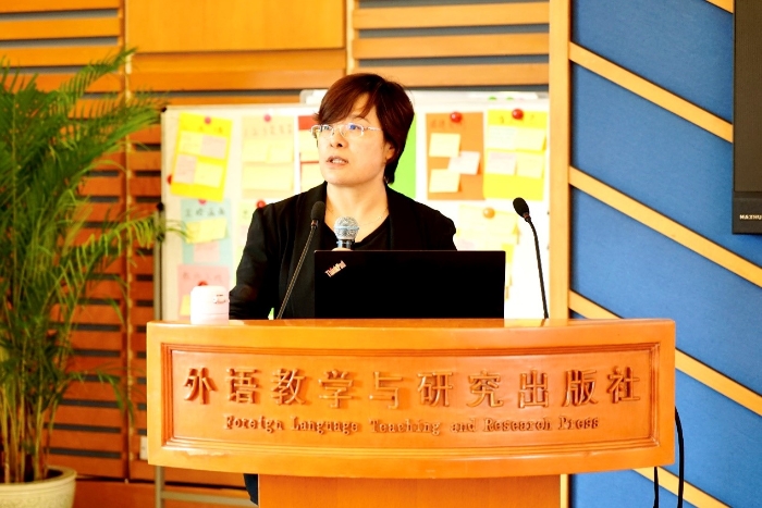郄利芹教授做了《基于主题意义探究的英语绘本阅读教学与教育戏剧融合》及《新课标理念下小学英语教材与绘本的整合》的讲座。她以《丽声三叶草分级读物第五级》中Chug the Tractor,《丽声北极星分级绘本(剧场版)》中Mimi the Superhero和Fox and Mother Hen为例,指出教育戏剧融入阅读教学的关键在于找到文本的“空白点”,用教育戏剧活动打开这些“空白点”,促进学生与文本发生交互。