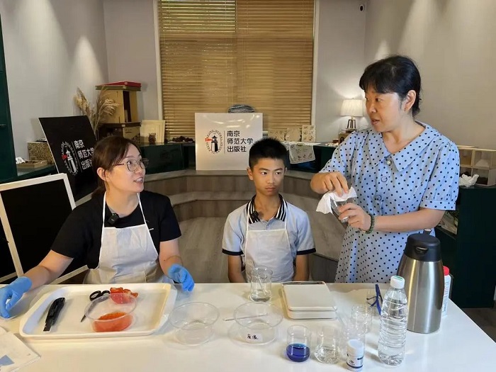7月17日,南京师范大学出版社基教分社把适合青少年学习、操作的科学小实验搬到日常生活场景之中,举行了一次别开生面的亲子“共做共玩”生活小实验活动。