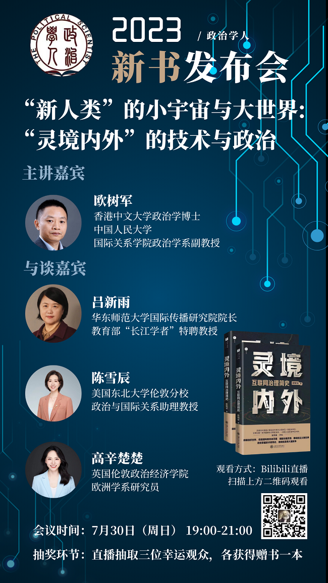 政治学人学术合作团队精心策划举办本次新书发布会,与读者共品书香之韵,探究信息技术带给人类社会的未知命运。本次活动由政治学人团队和上海交通大学出版社联合主办,邀请到本书的作者及三位相关学者共同分享。