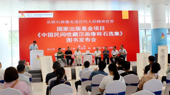 7月28日,由河南大学出版社举办的“从砖石画像走进汉代人的精神世界”——《中国民间收藏汉画像砖石选集》图书发布会在山东国际会展中心展馆内5号馆前舞台区举行。中国国家博物馆原田野考古部主任、终身研究馆员、国家文物局南昌汉代海昏侯刘贺墓考古发掘专家组组长、主编信立祥,山东省石刻艺术博物馆馆长、研究馆员、中国汉画学会副会长杨爱国,山东济宁市文物局文物保护中心主任胡广跃,山东师范大学齐鲁文化研究院特聘研究员、山东金石学会副会长吕金成,青岛崇汉轩汉画像砖博物馆馆长杨敏,河南大学出版社编审、本书编委会主任陈广胜,河南大学文化旅游学院副编审、执行主编王四朋受邀出席此次发布会。发布会由王斌和王四朋主持。
