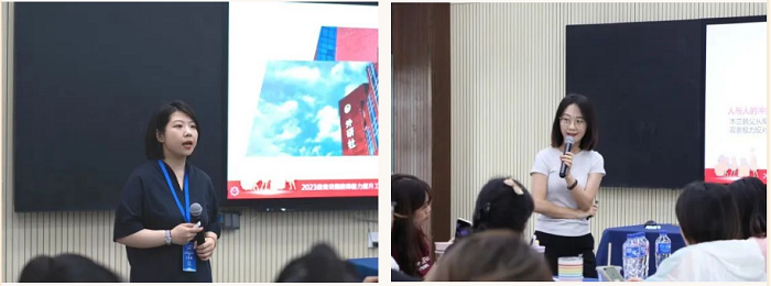 外研社基础教育研究中心培训师 张晟男(左)、王雪婷(右)